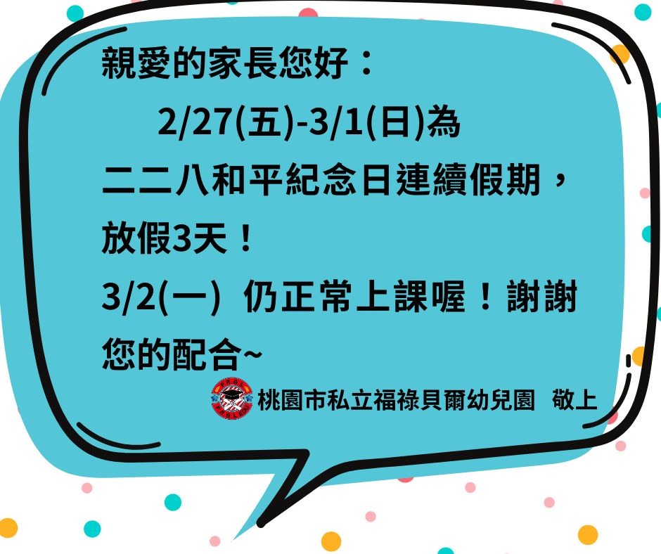 《連假通知》2/27連假放假3天